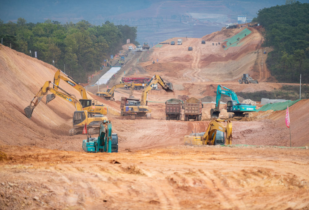 ↑滇中引水工程于2017年8月启动建设,建成后将从根本上解决滇中区域的水资源短缺问题。这是大型机械在滇中引水工程楚雄段施工9标观音山倒虹吸工程施工现场作业(2020年3月18日摄)。