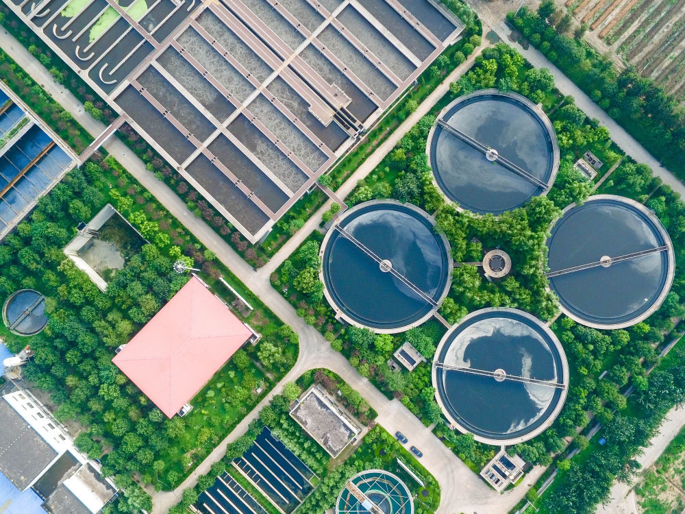 ↑在山东省邹平县,污水经城市污水处理厂处理,成为当地湿地公园的水源(无人机照片,2016年7月26日摄)。