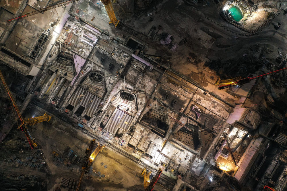 ↑大藤峡水利枢纽位于广西桂平市西江流域上的黔江河段,是国务院确定的172项节水供水重大水利工程的标志性工程。这是工程夜间建设现场(无人机照片,1月15日摄)。