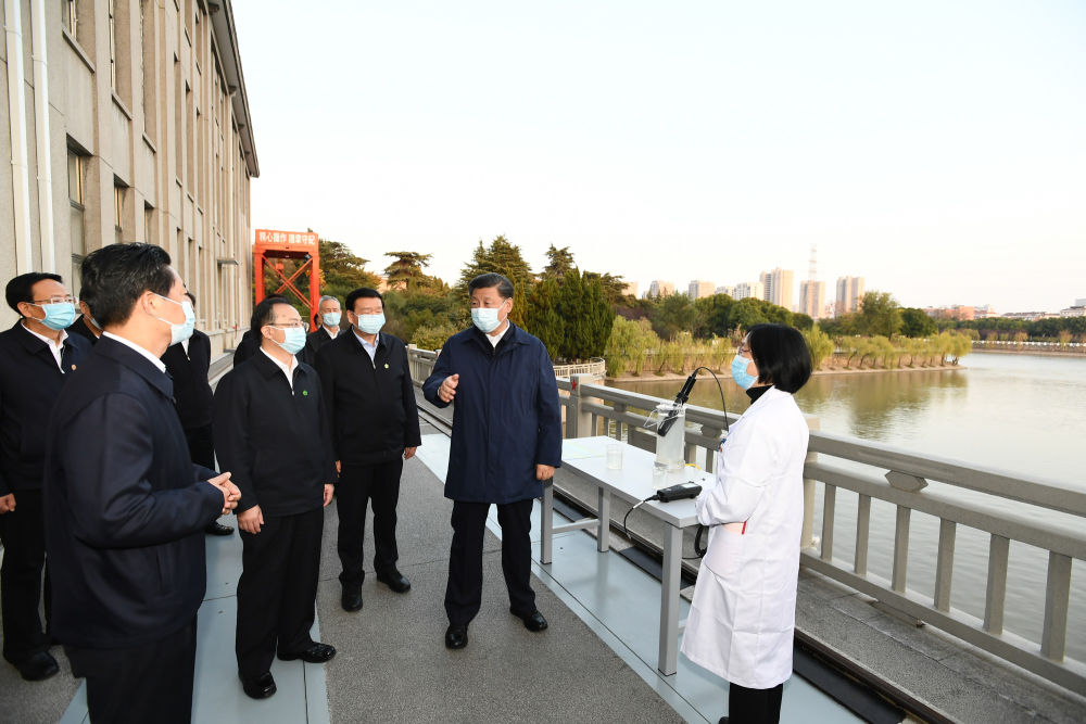 ↑2020年11月13日,习近平在江苏省扬州市考察调研。这是习近平在江都水利枢纽,了解南水北调东线工程规划建设和枢纽运行等情况。