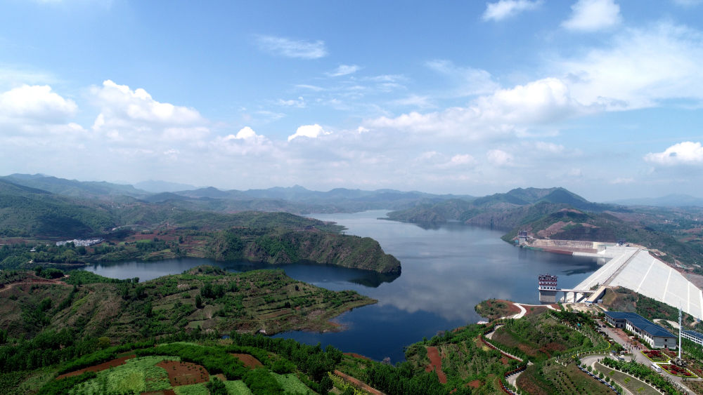 ↑位于河南省汝阳县前坪村的前坪水库,是一座以防洪为主,兼具供水、灌溉、发电功能的大型水利枢纽工程,是国务院确立的172项节水供水重大水利工程之一(无人机照片,4月26日摄)。