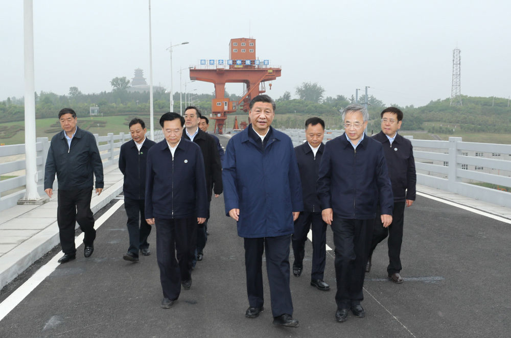 ↑5月13日下午,习近平在南阳市淅川县陶岔渠首枢纽工程考察。
