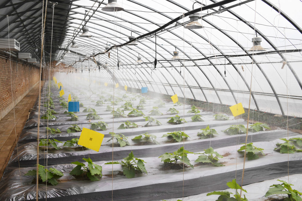 ↑北京海淀首农庄园是一座新型农业示范园。庄园蔬菜大棚采用滴灌与倒挂微喷相结合的双系统灌溉模式,上下结合,精准“投喂”,明显降低了用水量(3月18日摄)。