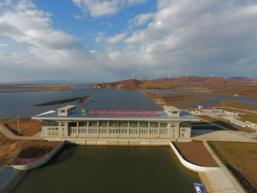 ↑2019年,黑龙江省开始建设三江灌区田间配套工程,规划渠系17000余条,总长度超过18000公里,每年可节省地下水18亿立方米。工程可释放灌区粮食生产潜力,促进稳定增产,农民持续增收。这是青龙山灌区渠首站(无人机照片,10月15日摄)。