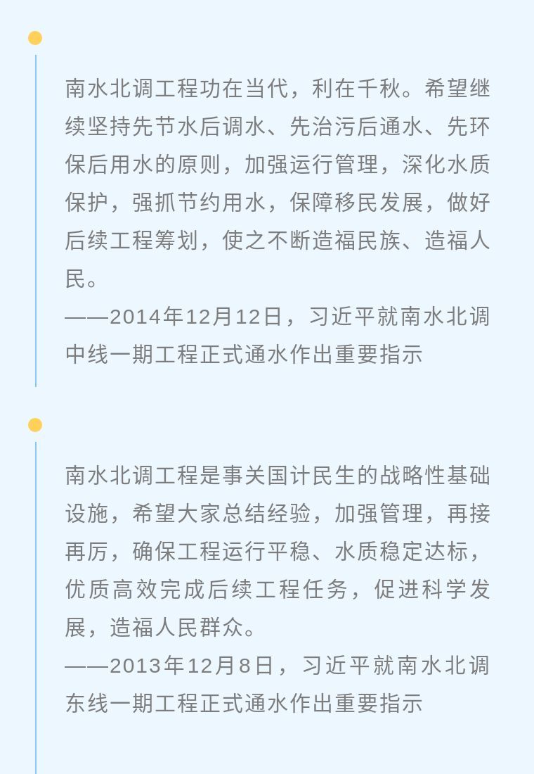 ↑2013年5月30日,南水北调东线工程的源头江都水利枢纽开始试通水。2013年11月,南水北调东线一期工程正式通水。