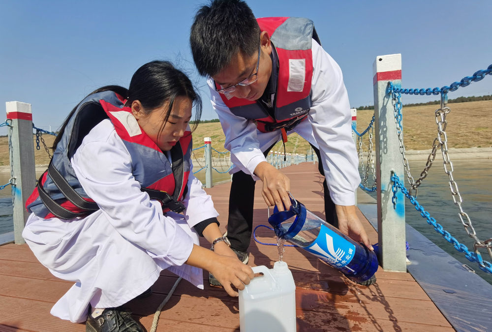 ↑2020年11月12日,工作人员在南水北调中线陶岔渠首监测水质。