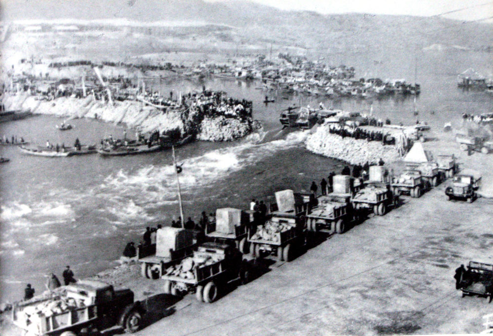 ↑1959年,丹江口大坝建设开始进行汉江截流(资料照片)。