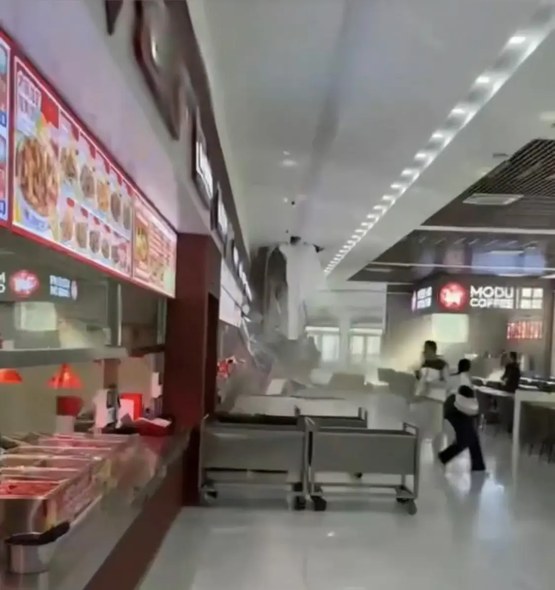 长春一高校食堂吊顶垮塌,校方工作人员:无人受伤