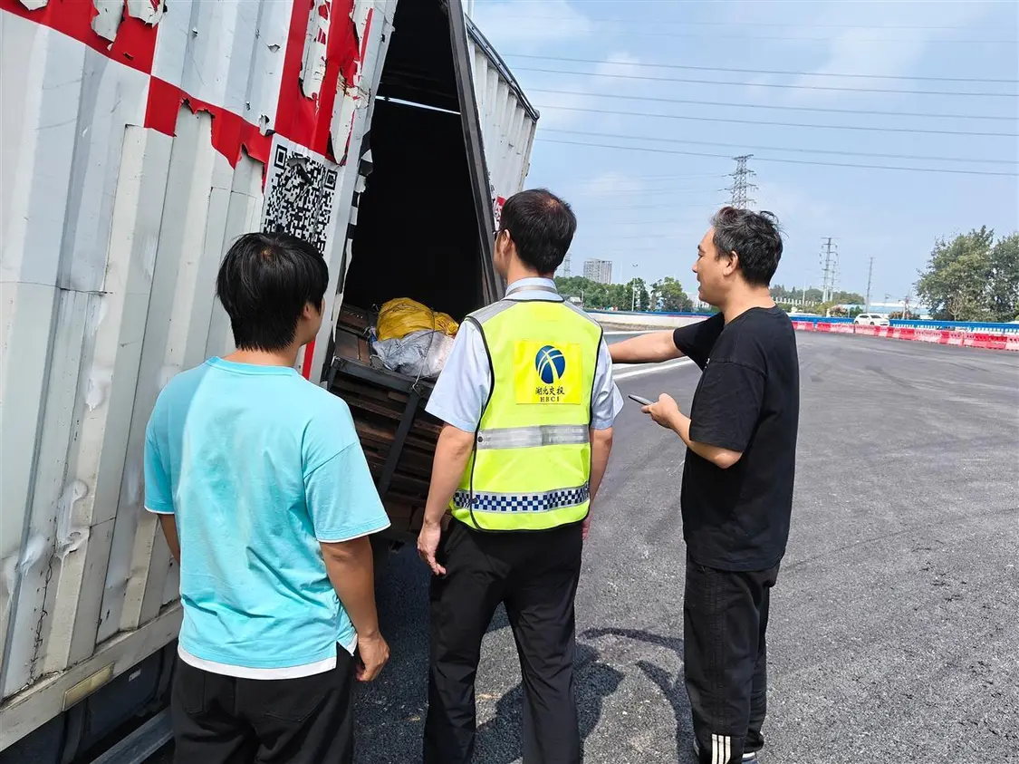“当时就看到一辆车歪斜着停在出口处,司机急得不知所措。”武汉北收费站当班收费员刘登川回忆,他第一时间察觉异常并上前询问。据了解,该货车在高速行驶过程中,由于货物捆扎不牢,在惯性作用下发生大幅度位移。猛烈冲击不仅导致车身明显倾斜,更将部分厢体撞破,现场情况十分危急。