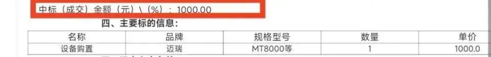 10月14日,有媒体反映,我校附属医院一设备采购项目存在“300万元预算,1000元中标”的情况。