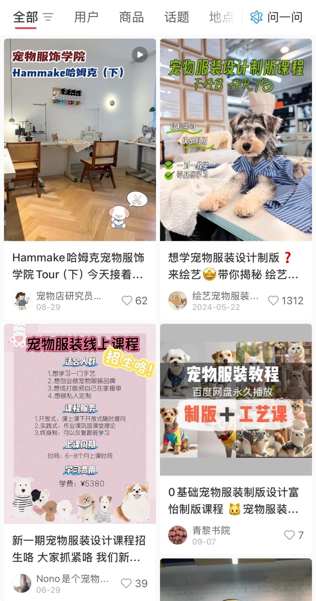 在社交媒体平台,也有不少博主售卖宠物服装线上课程,有的课程还细分为吊带款、背心款、连帽款、胸背款等多个款式。