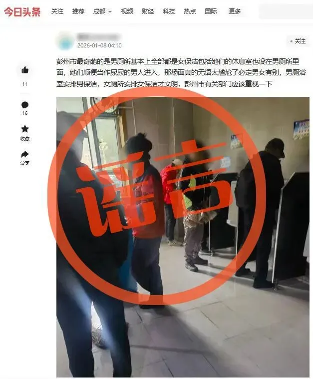 网传四川彭州一男公厕都是女保洁、内设休息室?警方:不实