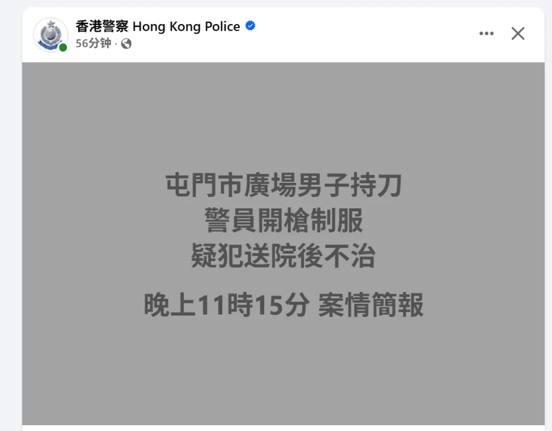 男子带刀劫持人质被警方两枪击毙,香港通报详情