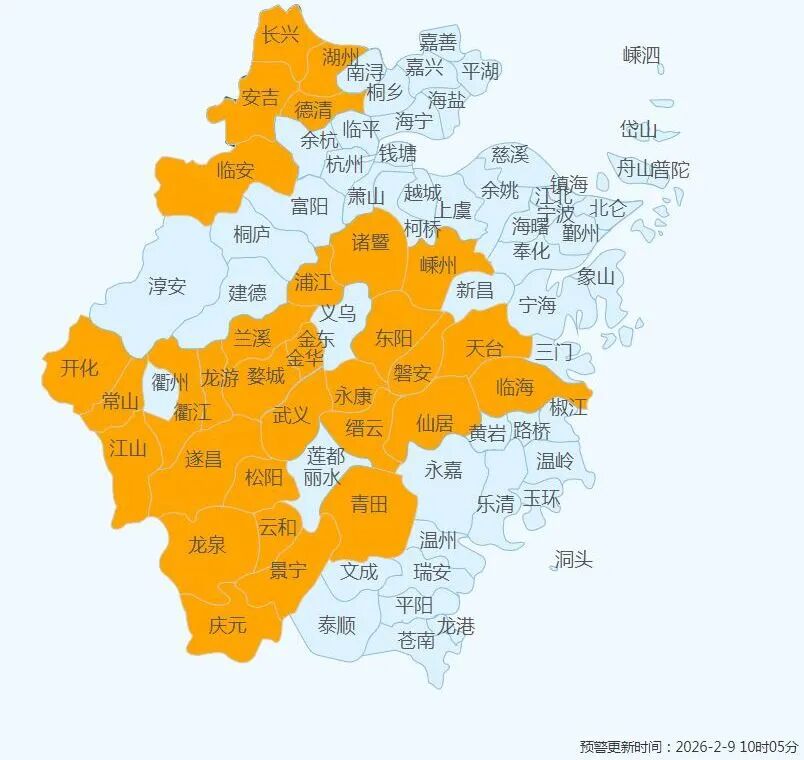 据“浙江天气”微信公号2月9日消息,寒潮结束,但余威犹在。2月9日早晨全省近八成站点的最低气温跌破零度。9日早晨最低气温山区-4~-8℃,其它大部地区-1~-4℃。其中最冷平原站点是镇海,-5.8℃。省会杭州也仅有-2.9℃,是今冬以来最冷的一个早晨。