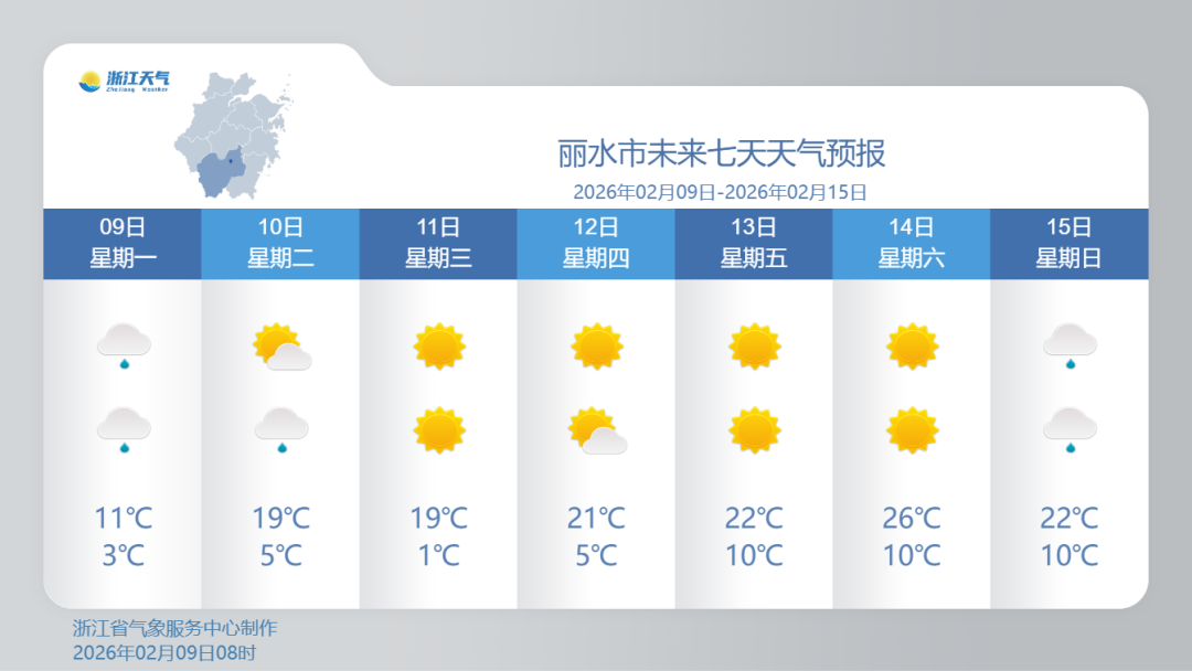 9日白天起浙江省加入升温行列,10日开始就没有这么冷了。未来一周,白天最高气温将在波动中回升,浙北将升至17℃左右,浙中南甚至能回升到25℃左右。整体来看,各地最高气温累积升幅大多能达到10℃以上。年前体感妥妥暖如春日!