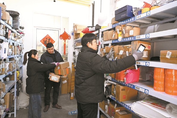 今天上午,谢志一家人正在驿站忙着整理货架 本报记者 徐程 摄