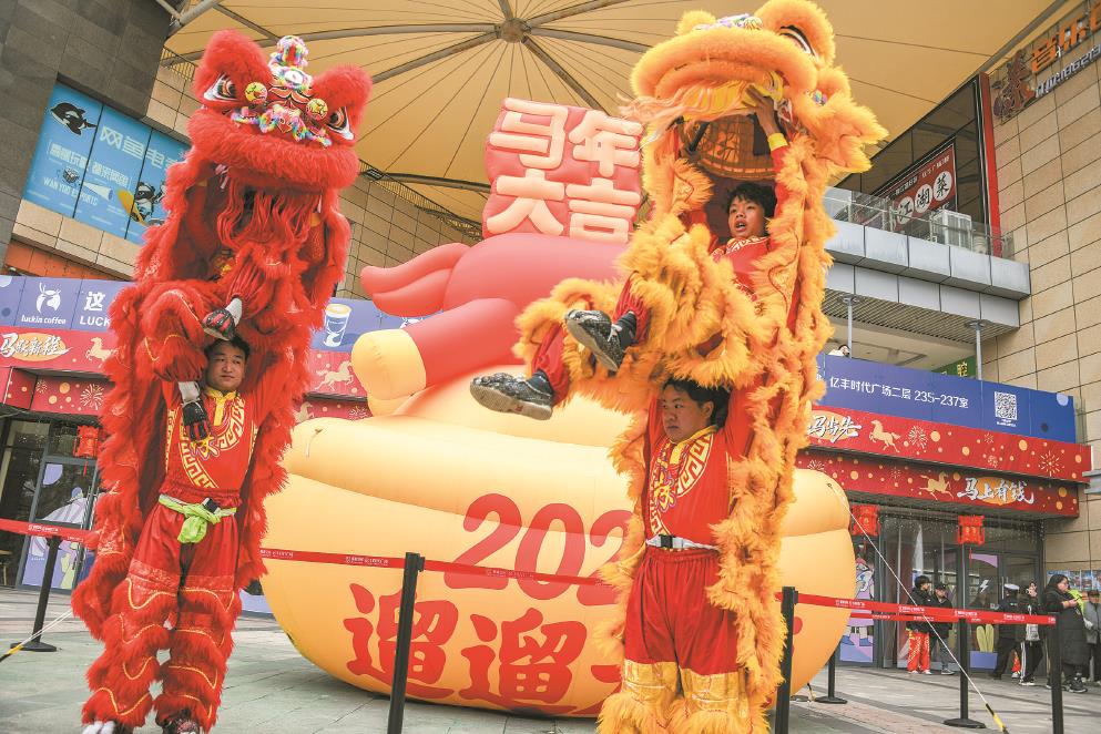 昨天,浦东新区三林镇亿丰时代广场内一派热闹景象,快闪舞狮每隔一小时舞动一次,引得现场叫好声一片。本报记者邢千里摄