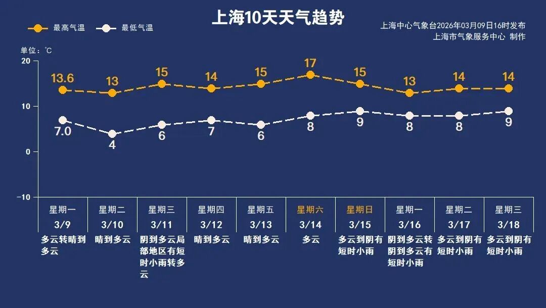 预计周六最高气温接近17℃