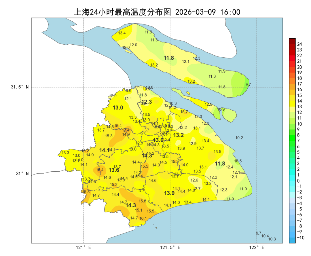 各区最高气温定格在11~15℃