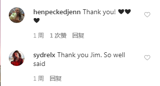 在吉姆·斯塔林的这条ins下,有网友表示认同,称赞他说得好↓