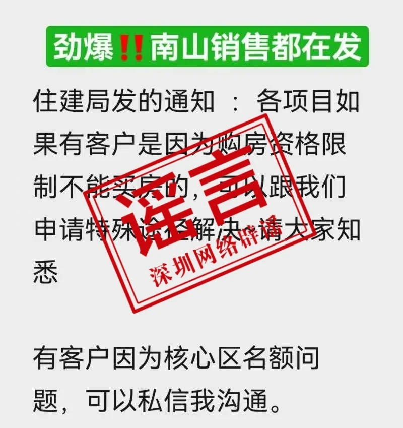 深圳新闻网2025年9月19日讯 今日,有关“深圳核心区放开限购”内容的微信聊天截图在网上流传,称“各项目如果有客户是因为购房资格限制不能买房的,可以申请特殊渠道解决”,引发关注。