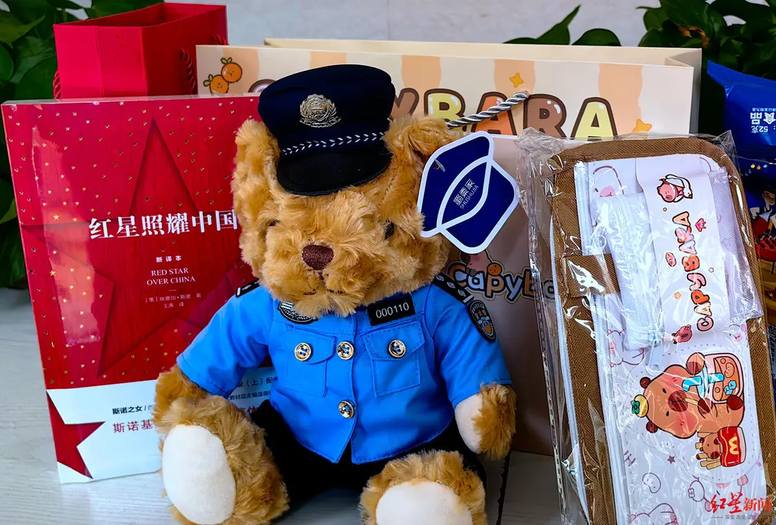 10月20日上午,宝莲派出所民警走进雁江区第一中学城东分校,将一封表扬信、一只警察公仔玩偶和一本《红星照耀中国》送到邓文昊手中,当面表扬他拾金不昧的高尚品德。民警表示,邓文昊不仅拾金不昧,更难能可贵的是在面对诱惑和不确定情况时,能保持冷静与理智。