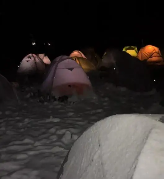 “有人留下遗言”,驴友在川西4000多米高山露营时突降暴雪,当地回应 极目新闻记者 唐佳燕 11月1日,有网友发文称,在四川省甘孜藏族自治州丹巴县党岭徒步时,多人在山上扎营,突降暴雪,多顶帐篷被雪掩盖。 该网友发布的视频显示,10月29日,他原本想走个简单路线,上山的时候还有阳光,甲玉拉措湖(海拔4100米)的景色还是秋天,不久后开始下小雪。当晚,多顶帐篷在山上露营,雪越下越大,“气温应该在零下15℃左右”。该网友即使穿着了羽绒服,睡在700克鸭绒睡袋,并且使用了蛋巢垫,也被直接冻醒。