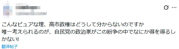 “这么简单的道理,高市政权为什么就不明白呢?唯一能想到的就是,自民党的政客们想从这场冲突中获利!”↑