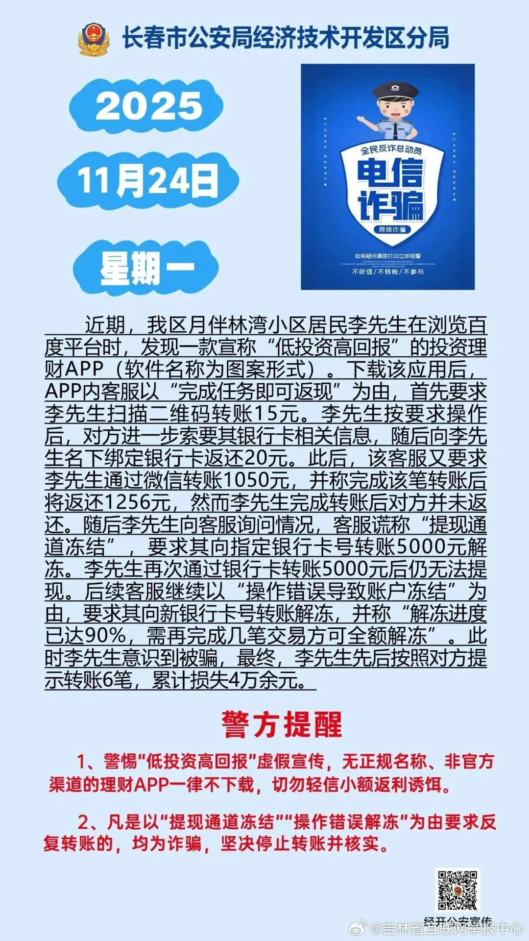 扫码就返钱?“提现通道冻结”“账户操作错误”?这种“低投资高回报”的APP信了就上当!