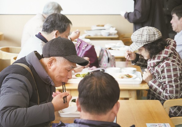 与此同时,在食堂楼上的社区生活服务中心日间长者照护区内,十多位老人的餐食也已由工作人员准时送达。对于这些行动更为不便的老人,食堂提供了“零距离”送餐服务,确保他们无需下楼就能按时吃上营养均衡的午餐。