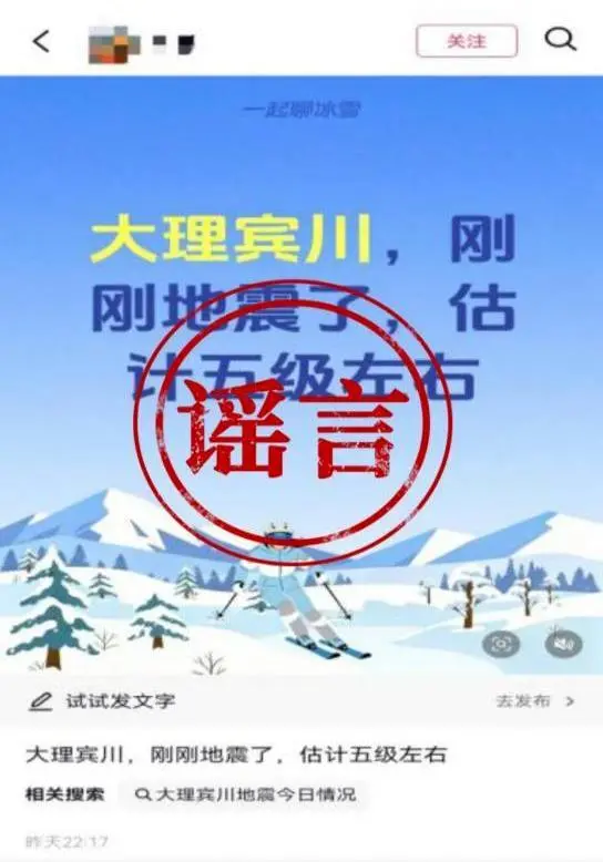 为博关注编造“地震”谣言?云南宾川一网民被依法处罚