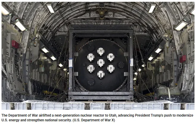 空运开始几分钟前,美国“战争部”在社交媒体上也发文预告,将“空运下一代核反应堆”,并称此举是遵循美国总统特朗普推广核能的命令。去年5月,特朗普签署了4项行政命令,旨在加速核能行业发展。