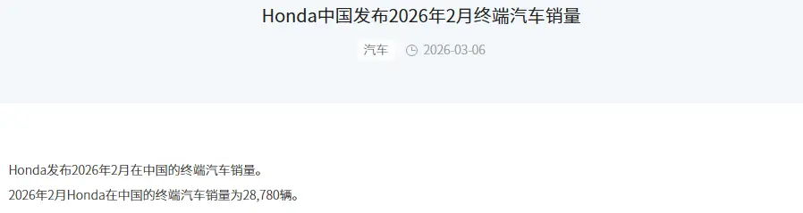 来源:凤凰网财经《公司研究院》 3月12日,本田汽车称,其2025财年(2025.4–2026.3)预计经营亏损2700亿~5700亿日元,此前预计收益5500亿日元;预计净亏损4200亿~6900亿日元(约合人民币116亿~247亿元),此前预计收益3000亿日元。 该公司同日称,取消了部分美国制造电动汽车的研发和上市计划。预计因重新评估电气化战略产生的总费用和损失最高达2.5万亿日元(约合人民币1082亿元)。 假如真如本田汽车所预估,那将是本田汽车上市以来首次年度亏损。 而在中国市场,本田的发展也显现出危机。今年2月,本田中国官网公布销量仅28780辆,同比下滑15%。今年前两个月累计销量86269辆,同比降幅为16%。从最新月销量数据看,其销量规模逐渐被鸿蒙智行、零跑等新势力品牌迎头赶上。