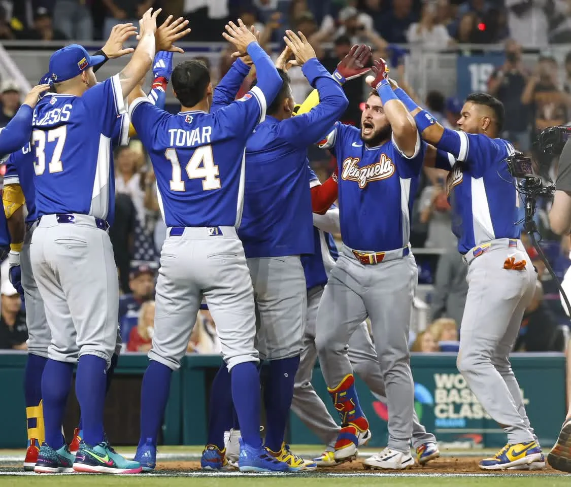 直播吧3月18日讯 WBC世界棒球经典赛决赛在美国MLB球队迈阿密马林鱼主场进行。 委内瑞拉在3局上凭借高飞牺牲打先驰得点,5局上外野手阿布雷乌阳春炮为委内瑞拉取得2-0领先。 8局下,美国一垒手布莱斯-哈珀一发2分炮追平比分。 9局上,内野手苏亚雷斯中左外野实时安打帮助委内瑞拉3-2再次取得领先。 最终委内瑞拉3-2击败美国首次夺得该项赛事冠军,美国则连续2届WBC屈居亚军。