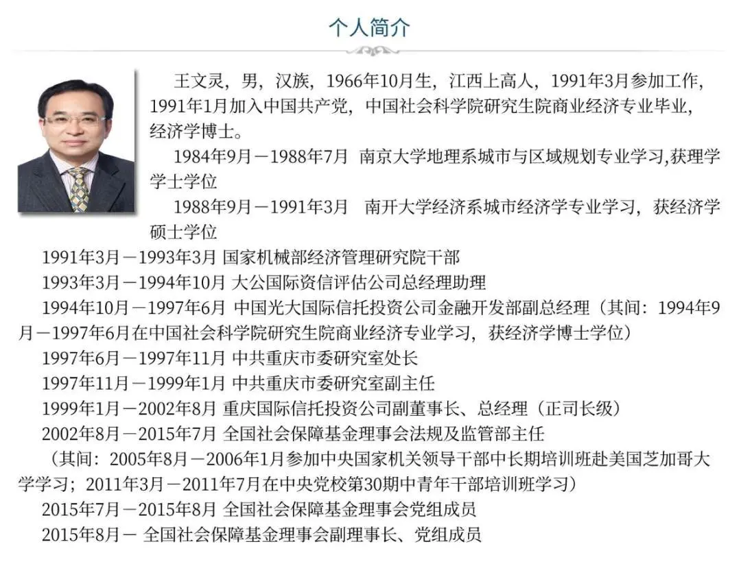 公开资料显示,王文灵,男,汉族,1966年10月生,江西上高人,1991年3月参加工作,1991年1月加入中国共产党,中国社会科学院研究生院商业经济专业毕业,经济学博士。