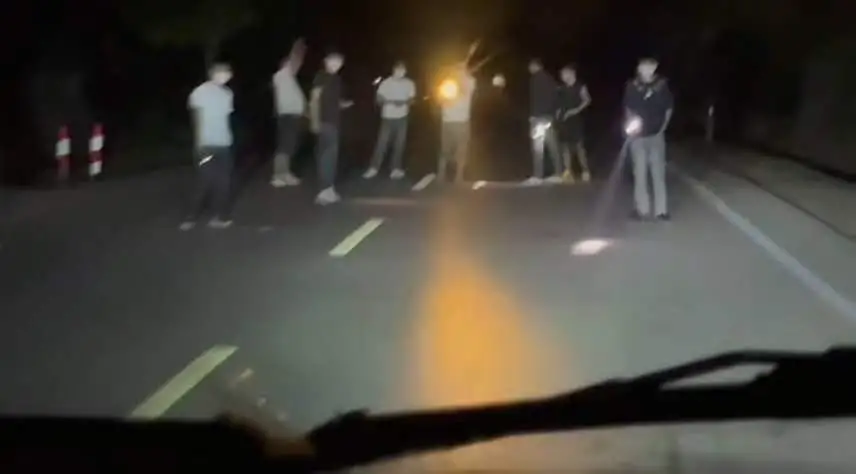 近日,一广西网友称,靖西一地有人拦车。画面中多名男子手持手电筒等工具站在路边,有人称事发在靖西市地州镇辖区。
