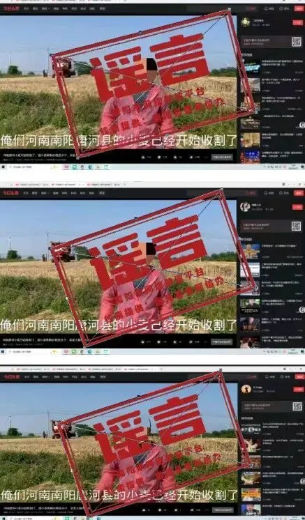 近日,某自媒体平台“倾橙之恋”“二园自媒体”“月下独酌”等账号发布“河南南阳唐河县小麦开始收割了”相关内容,引发网民关注。